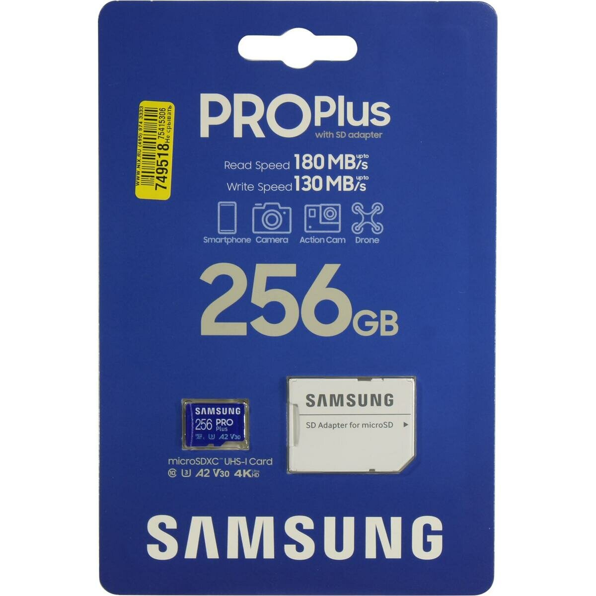 Карта памяти Samsung microSDXC 256GB PRO Plus microSDXC Class 10 UHS-I U3 + SD адаптер MB-MD256SA/EU