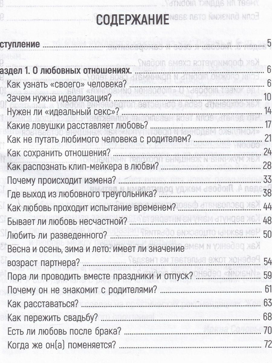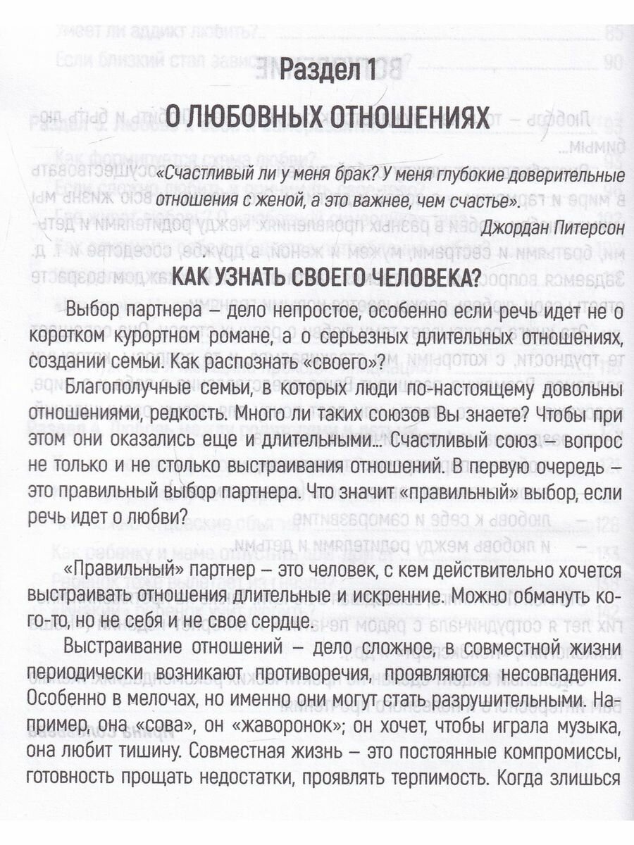 Книга раскрывает тему любви с разных сторон - в паре, в детско-родительских отношениях и к себе. Отмечены основные трудности, с которыми сталкиваются люди, даются практические рекомендации, помогающие гармонизировать отношения и не совершать непоправимых ошибок. Книга поможет читателю лучше понять себя и свои взаимоотношения, найти ответы на жизненно важные вопросы.