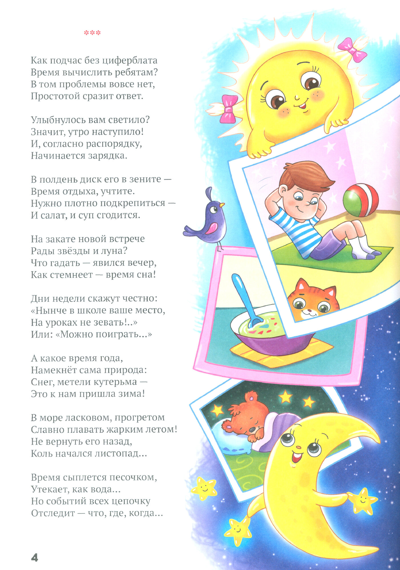 Скажи, ты уже знаешь, что такое время? Умеешь определять его по часам? А если их нет под рукой - что тогда? Ты, конечно же, не хочешь опоздать на занятия, а перепутать время встречи с друзьями и вовсе было бы очень обидно. Чтобы ничего подобного не случилось, придётся разобраться с ответами на вопросы, связанные со временем. Наталья Шарапова с радостью поможет тебе. На страницах этой книги ты найдёшь стихотворения, которые научат тебя управляться с циферблатом, а если вдруг ты забыл часы дома, подскажут, на какие явления природы обратить внимание. И это не всё! В книге много интересной информации, которая окажется тебе очень полезна. Ну что, готов? Тогда давай начнём!
