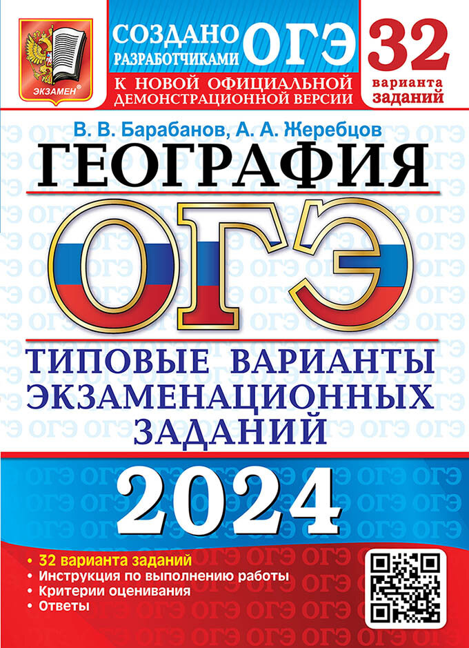 ОГЭ-2024. География. 32 варианта. Типовые варианты экзаменационных заданий от разработчиков ОГЭ (Барабанов Вадим Владимирович, Жеребцов Андрей Анатольевич); Экзамен, 2024
