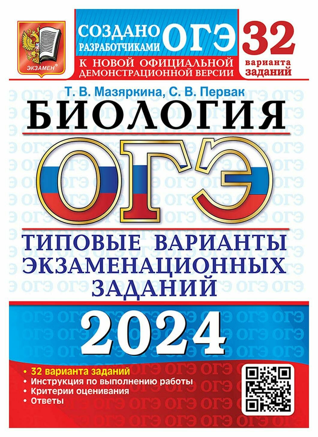 ОГЭ-2024. Биология. 32 варианта. Типовые варианты экзаменационных заданий от разработчиков ОГЭ (Мазяркина Татьяна Вячеславовна, Первак Светлана Викторовна); Экзамен, 2024