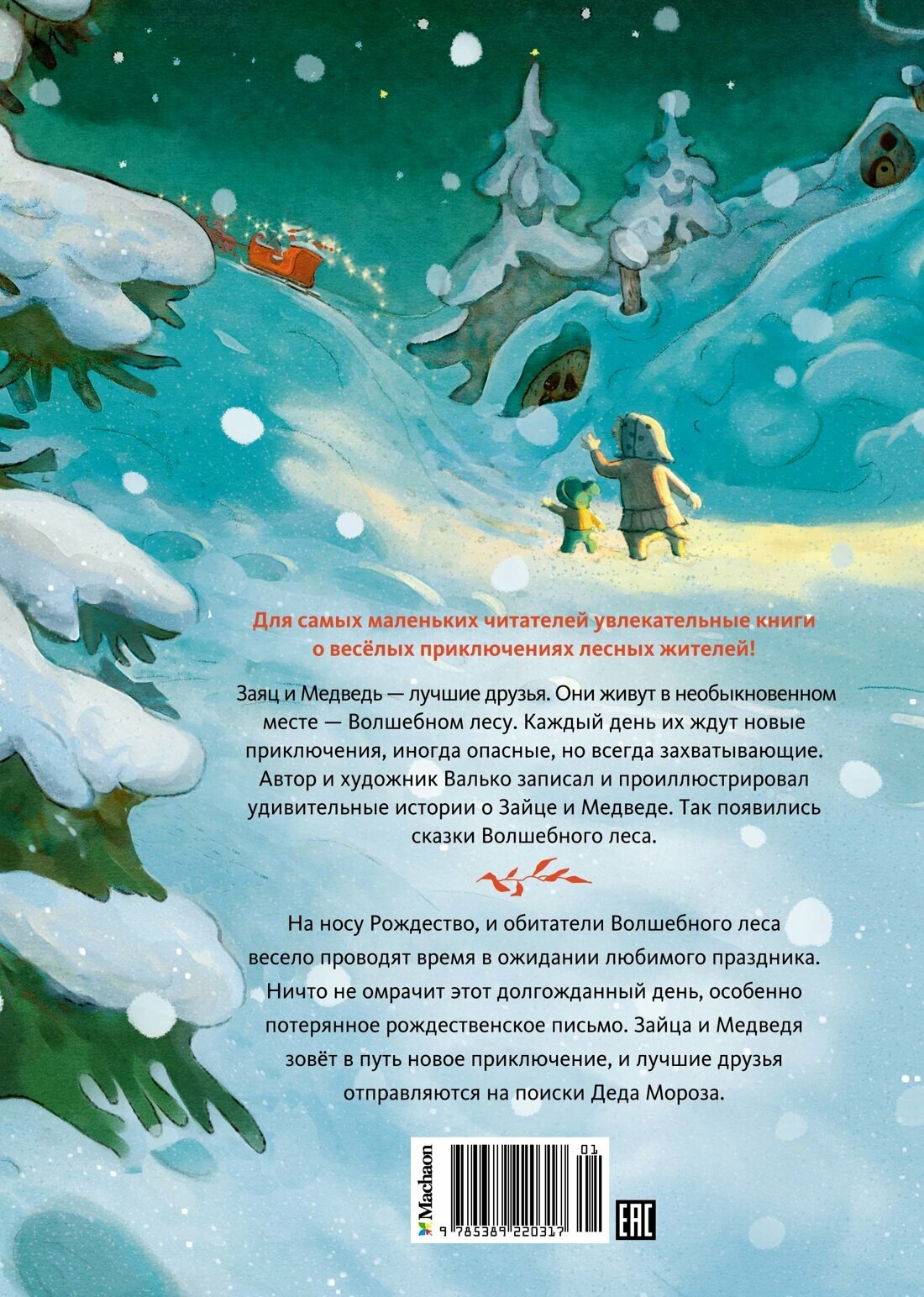 Заяц и Медведь — лучшие друзья. Они живут в необыкновенном месте — Волшебном лесу. Каждый день их ждут новые приключения, иногда опасные, но всегда захватывающие. Автор и художник Валько записал и проиллюстрировал удивительные истории о Зайце и Медведе. Так появились сказки Волшебного леса.
