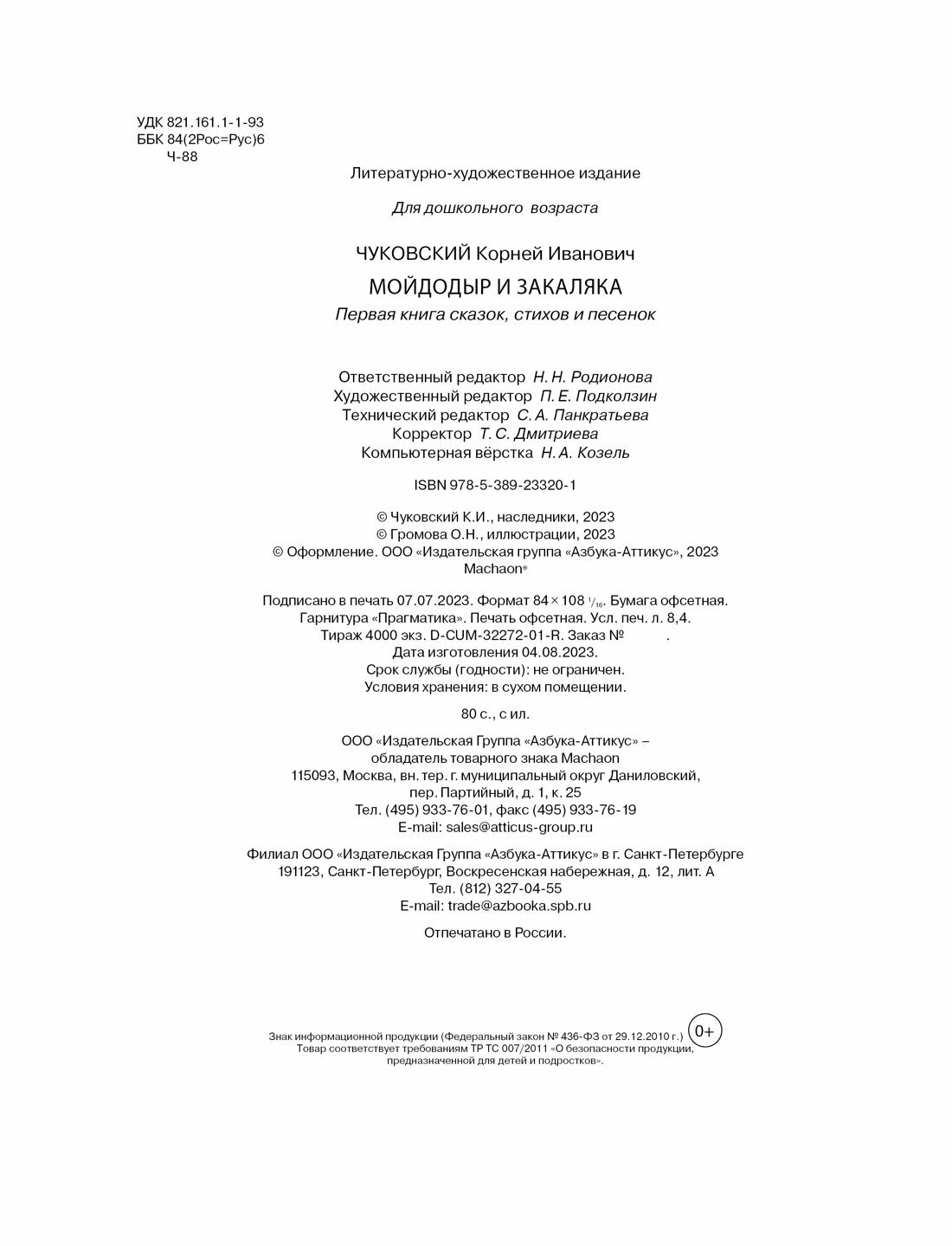 Мойдодыр и Закаляка. Первая книга сказок стихов и песенок (Чуковский Корней Иванович); Махаон Издательство, 2023