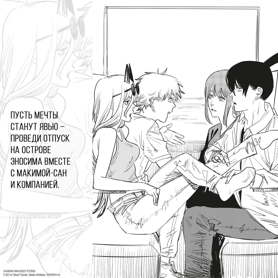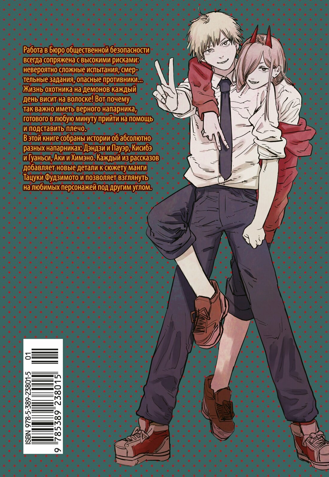 В этой книге собраны истории об абсолютно разных напарниках: Дэндзи и Пауэр, Кисибэ и Гуаньси, Аки и Химэно. Каждый из рассказов добавляет новые детали к сюжету манги Тацуки Фудзимото и позволяет взглянуть на любимых персонажей под другим углом.