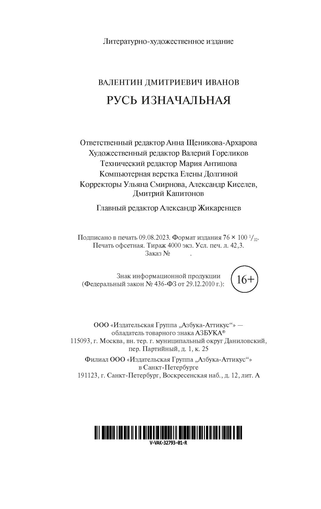 Книга: Русь изначальная (Валентин Дмитриевич Иванов); Азбука, 2023