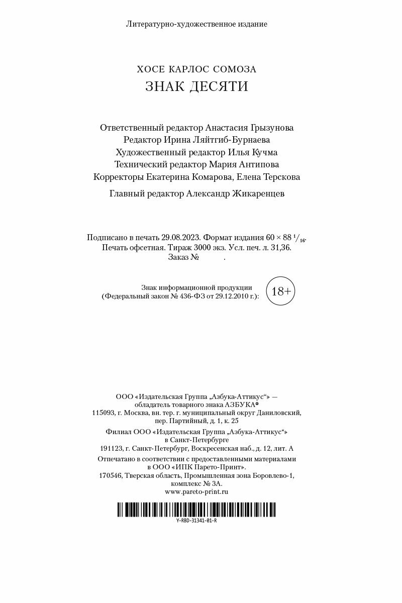 Книга: Знак Десяти (Сомоза Хосе Карлос); Азбука, 2023