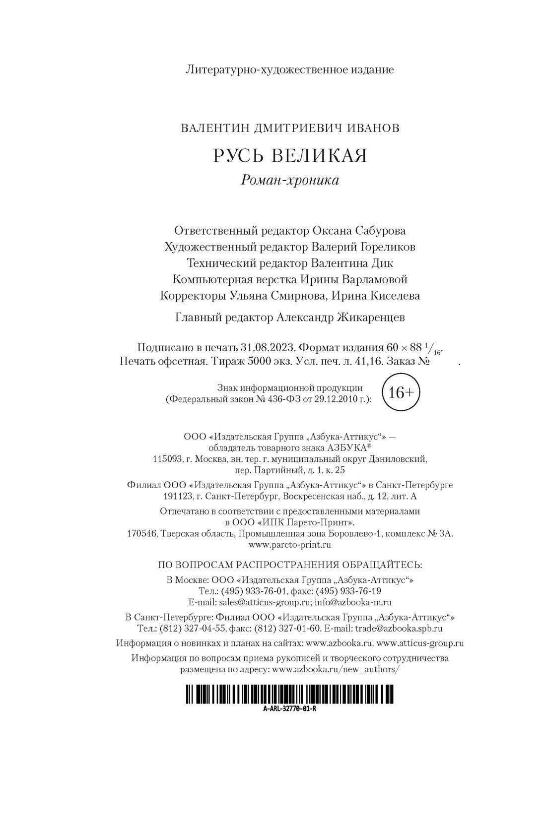 Книга: Русь Великая (Иванов Валентин Дмитриевич); Азбука, 2023
