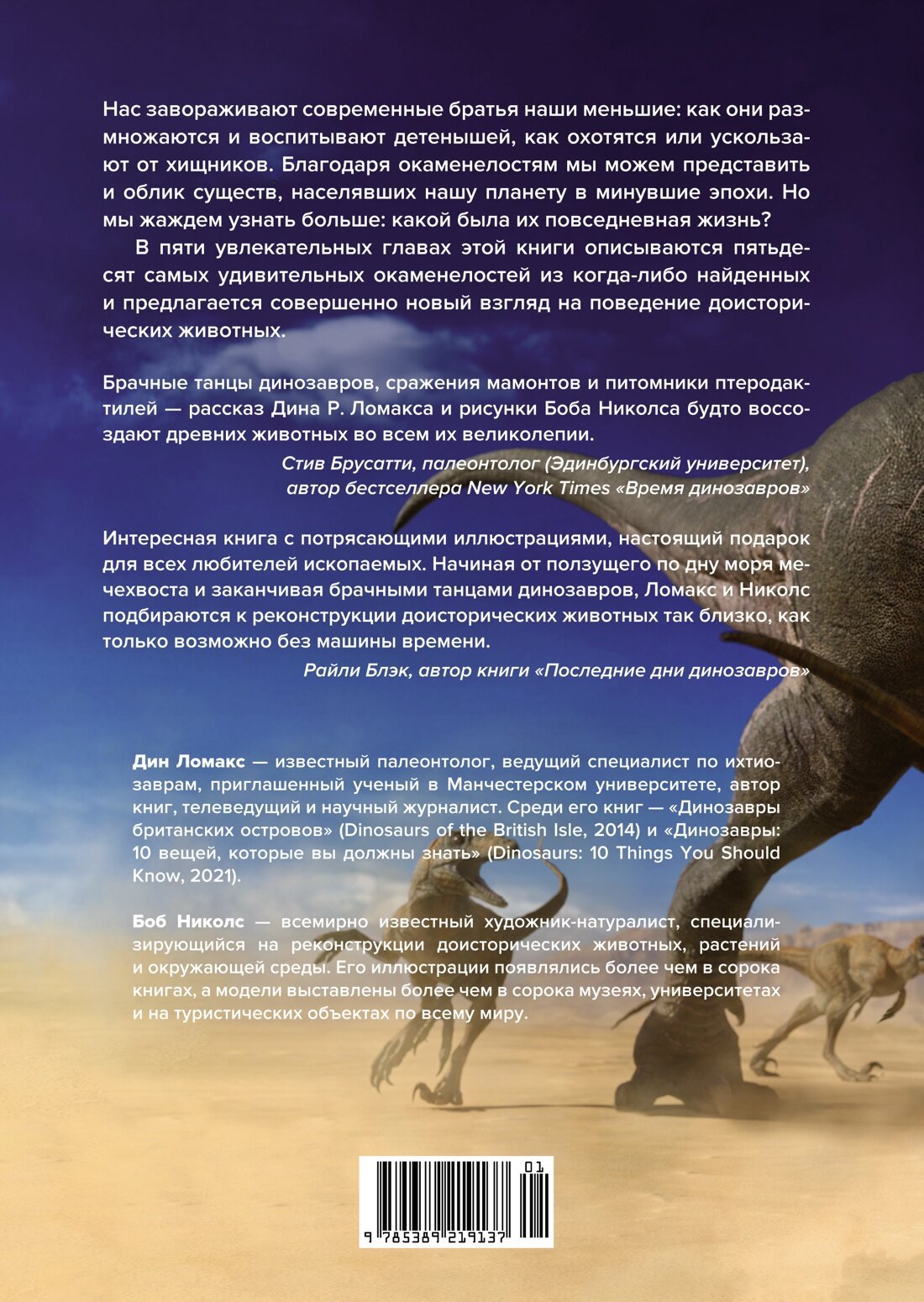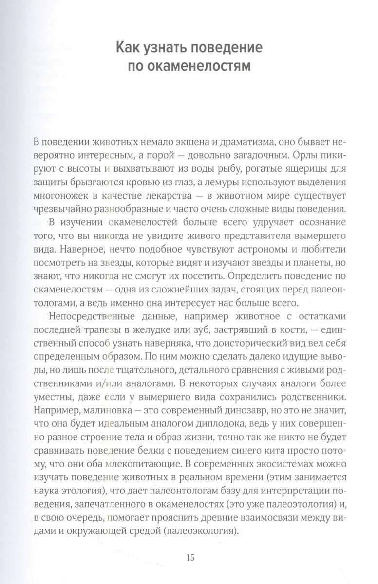 От сражающихся не на жизнь, а на смерть динозавров до роющих норы ленивцев размером со слона — эта книга покажет вам обитателей далекого прошлого Земли. В пяти увлекательных главах описываются пятьдесят самых удивительных окаменелостей из когда-либо найденных и предлагается совершенно новый взгляд на поведение доисторических животных. Известный западный палеонтолог Дин Р. Ломакс представляет уникальные непосредственные свидетельства, показывающие животных в важные моменты их повседневной жизни, будь то динозавры, высиживающие яйца словно птицы, мухи, сохранившиеся во время спаривания, или страдающий от паразитов тираннозавр рекс. Каждая окаменелость, которую описывает автор, рассказывает уникальную историю о доисторической жизни. Часто эти истории напоминают нам о современных животных, и тогда особенно ярко проявляется эволюционная нить, связывающая все живые существа с их далекими предками. Убедитесь сами, что окаменелости — это не просто неодушевленные объекты: в них зафиксирована история существования организмов, столь же полных жизни, как и современных. А яркие и научно выверенные иллюстрации знаменитого палеоиллюстратора Боба Николса оживляют эти захватывающие события.