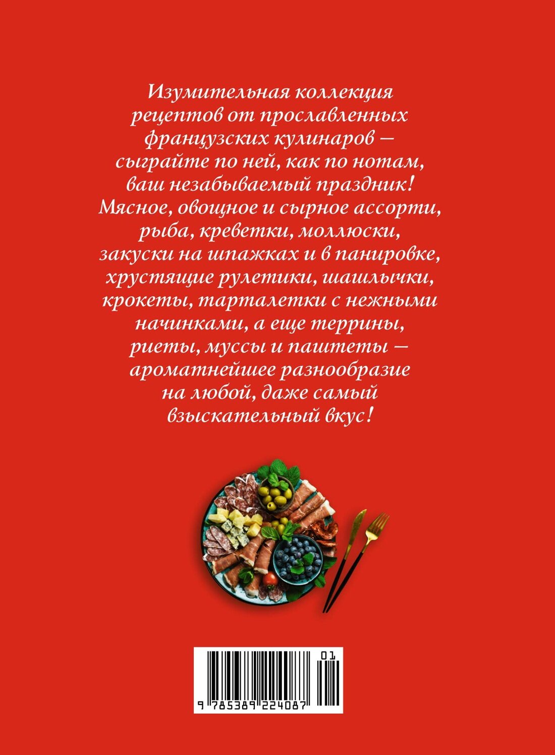 Мясные закуски, сырная тарелка, бретонское, итальянское и южное ассорти, а к ним — террины, риеты, муссы, паштеты и салаты… Откройте для себя 80 рецептов и поделитесь ими со своими близкими. А еще вы узнаете, с какими соусами и приправами подавать закуски, и, конечно, найдете совет по выбору напитка и хлеба к каждому блюду!