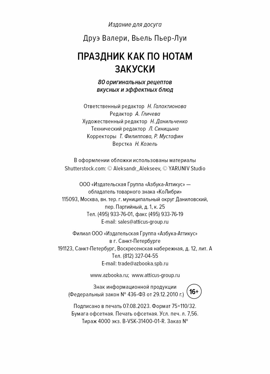 Праздник как по нотам: Закуски: 80 оригинальных рецептов вкусных и эффектных блюд (хюгге-формат) (Друэ Валери, Вьель Пьер-Луи); КоЛибри, 2023