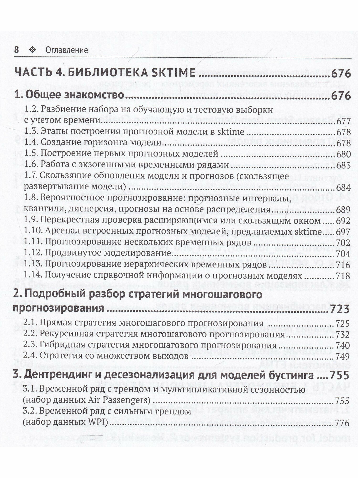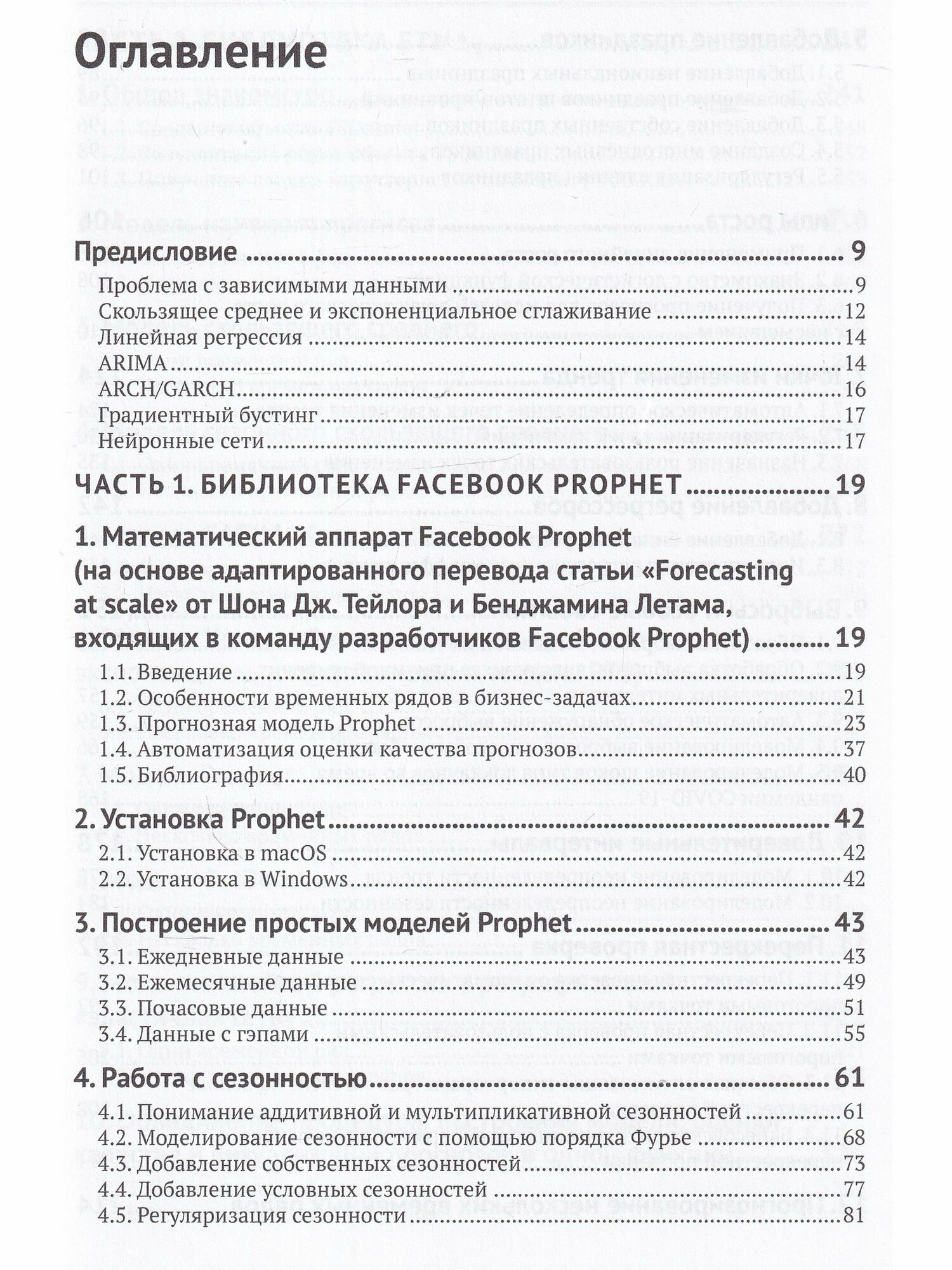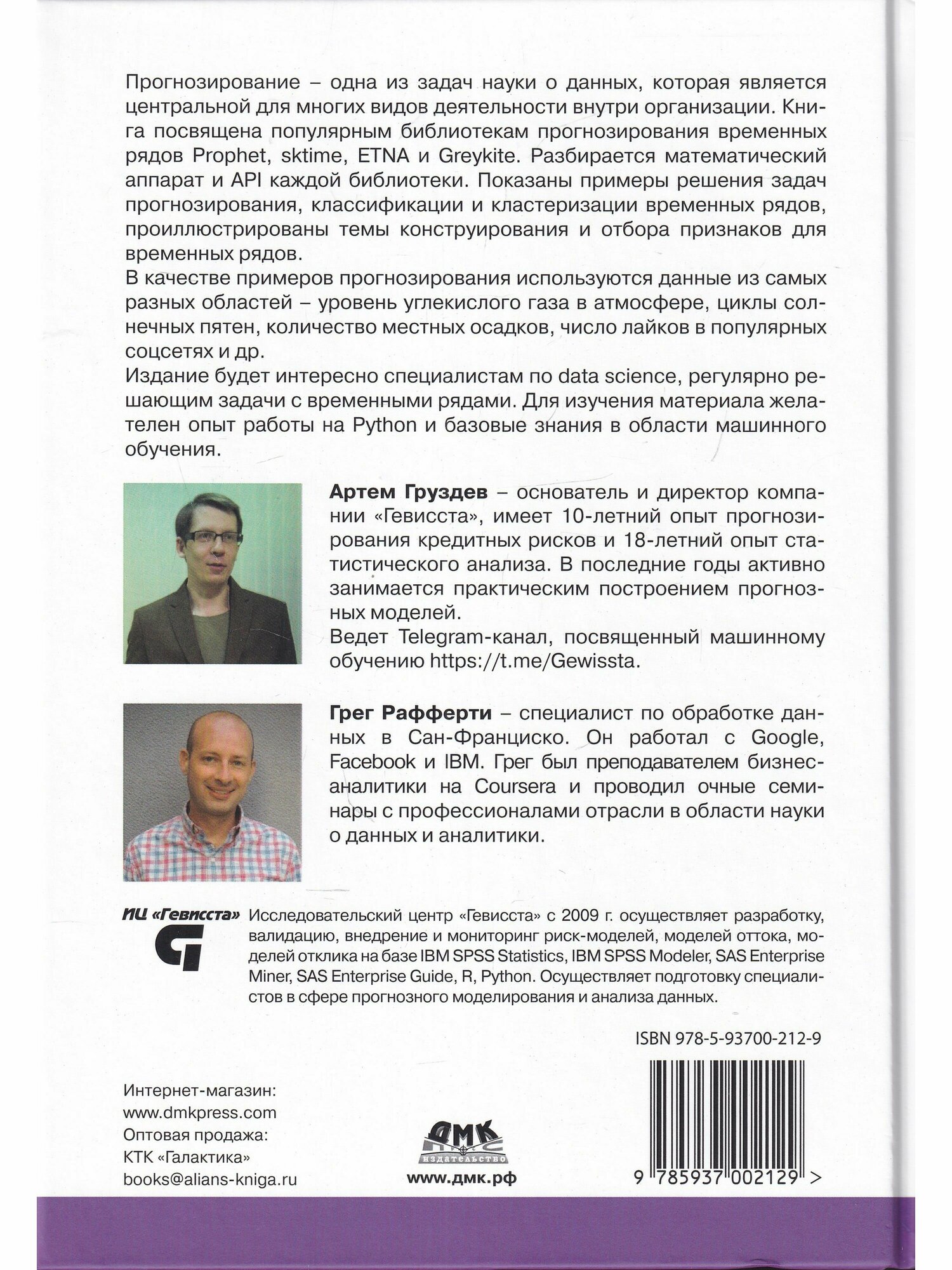 Прогнозирование - одна из задач науки о данных, которая является центральной для многих видов деятельности внутри организации. Книга посвящена популярным библиотекам прогнозирования временных рядов Prophet, sktime, ETNA и Greykite. Разбирается математический аппарат и API каждой библиотеки. Показаны примеры решения задач прогнозирования, классификации и кластеризации временных рядов, проиллюстрированы темы конструирования и отбора признаков для временных рядов.