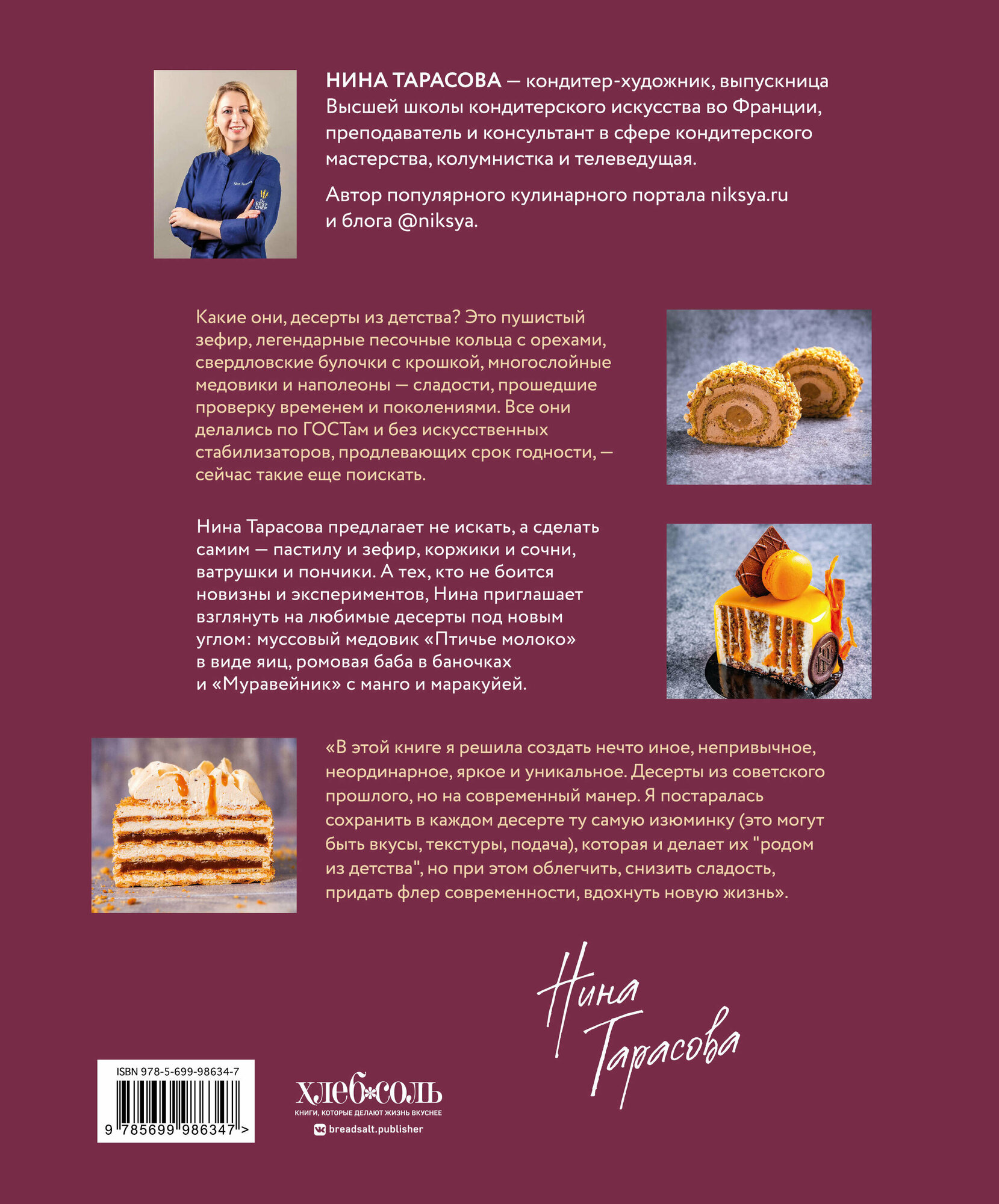 Новая книга Нины посвящена советским десертам, которые успели стать классикой не для одного поколения. Однако это не просто воспроизведение ГОСТов (хотя и без них в книге не обойдется) — это творческое переосмысление «тех самых» сладостей. Сохранить изюминку каждого десерта, но вдохнуть в него новую жизнь — такую задачу ставит перед собой автор. Присоединяйтесь к творчеству и вы!