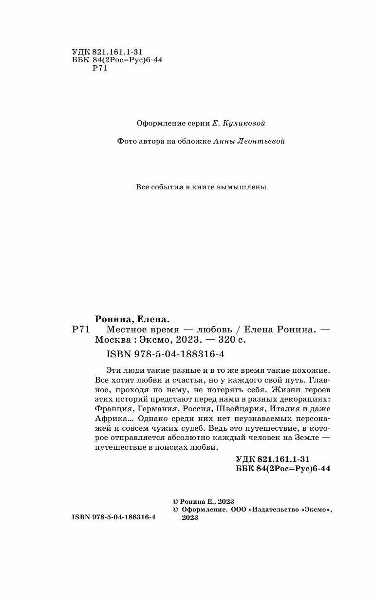 Книга: Местное время — любовь (Ронина Елена Николаевна); ООО "Издательство "Эксмо", 2023