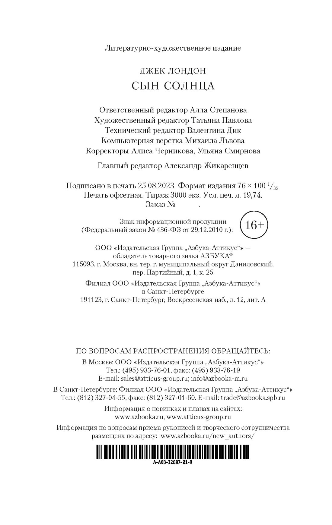 Книга: Сын Солнца (Джек Лондон); Азбука, 2023