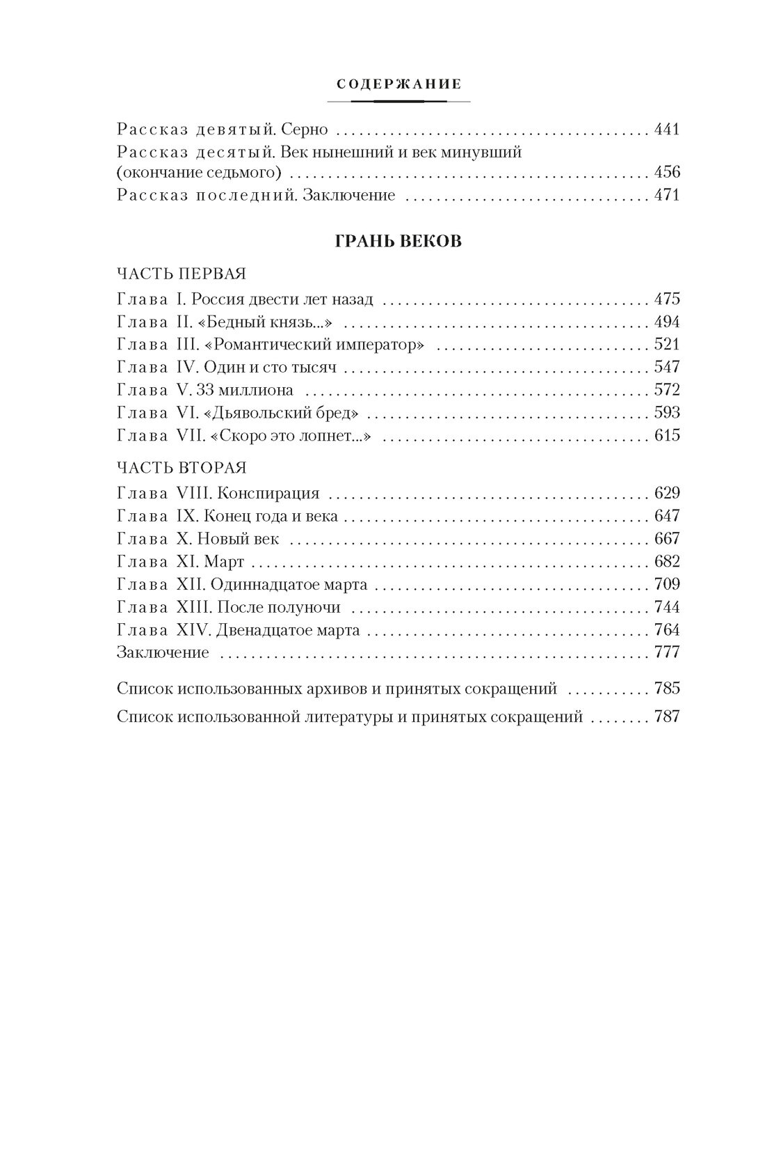 герои этих книг — выдающиеся личности своего времени: Петр I, А. П. Ганнибал, М. В. Ломоносов, Н. И. Панин, А. Н. Радищев, А. С. Пушкин, А. И. Герцен, декабристы... Книга «Грань веков» посвящена внутриполитической жизни России на рубеже XVIII–XIX веков. В центре внимания — судьба императора Павла I, чья личность до сих пор вызывает разноречивые оценки. Трагическая гибель императора, изменившая ход истории, окутана множеством легенд. Обстоятельства заговора подробно исследуются Н. Я. Эйдельманом.