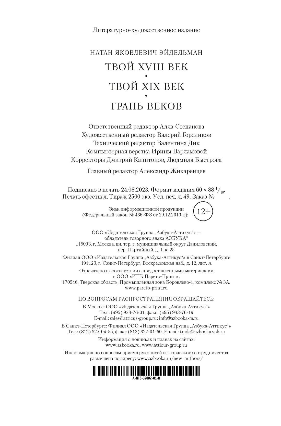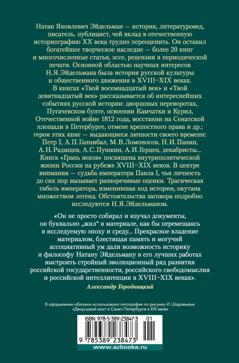 Твой XVIII век. Твой XIX век. Грань веков (Эйдельман Натан Яковлевич); Азбука Издательство, 2023