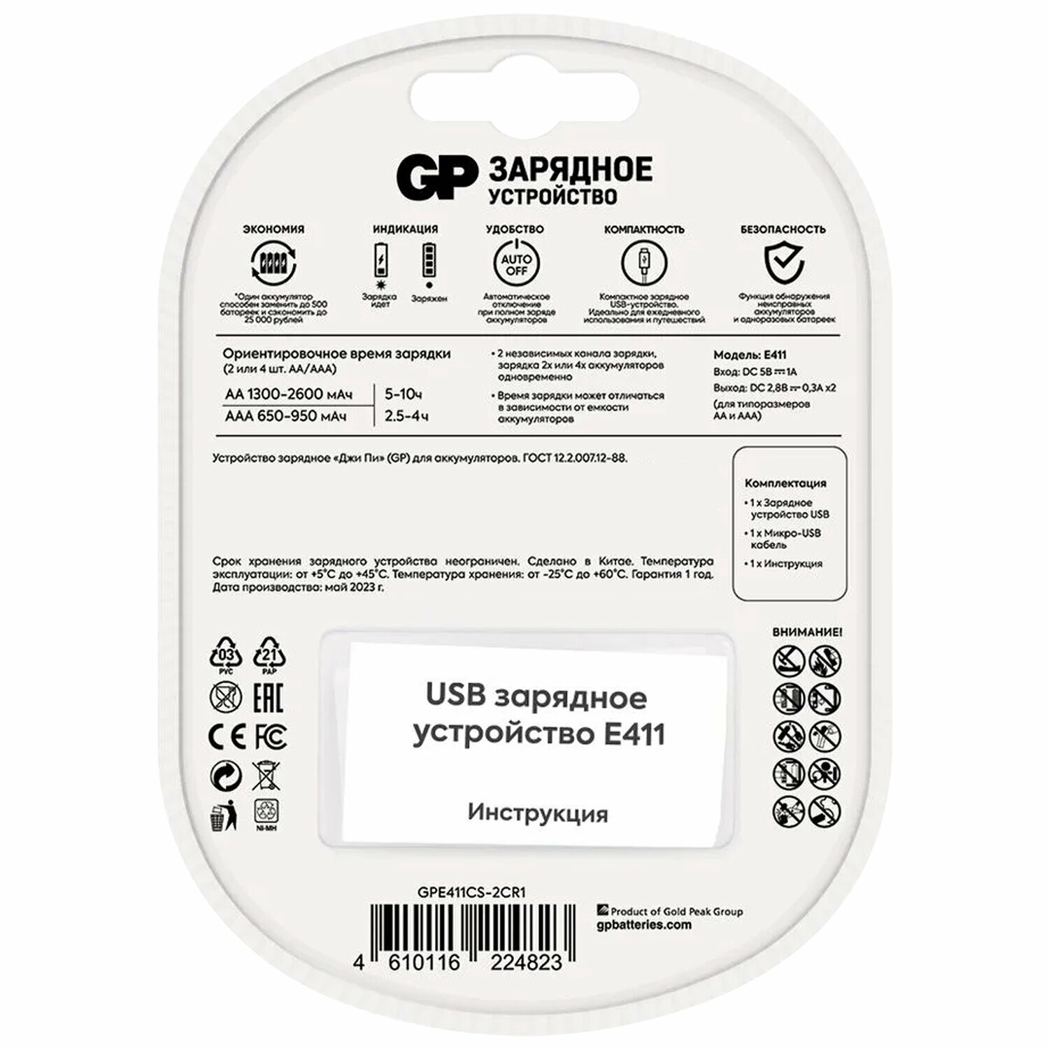 Зарядное устройство для батареек GP Rechargeable GP Е411/210AAHCCS-2CR1