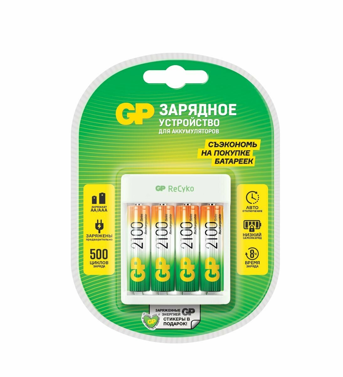 Зарядное устройство GP AA/AAA NiMH 2100mAh (4шт) блистер