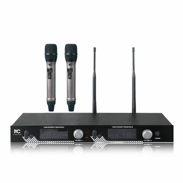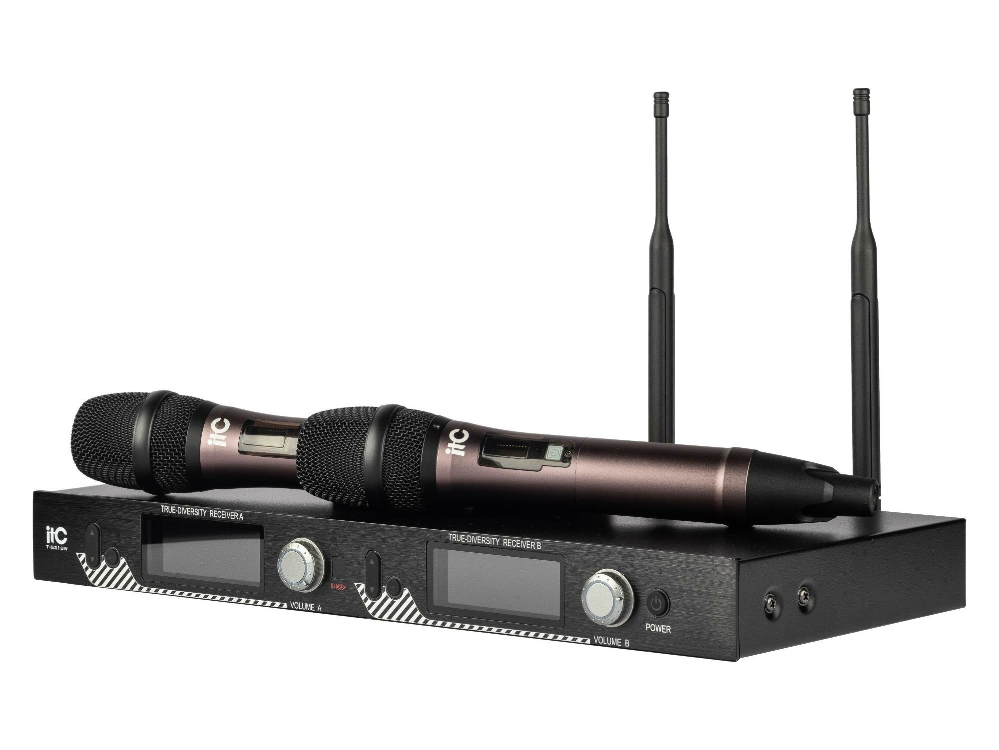 Радиосистема ITC UHF двухканальная радиосистема с двумя ручными микрофонами. LCD дисплей. True Diversity. Частотный диапазон 470-510 MHz. T-521UH
