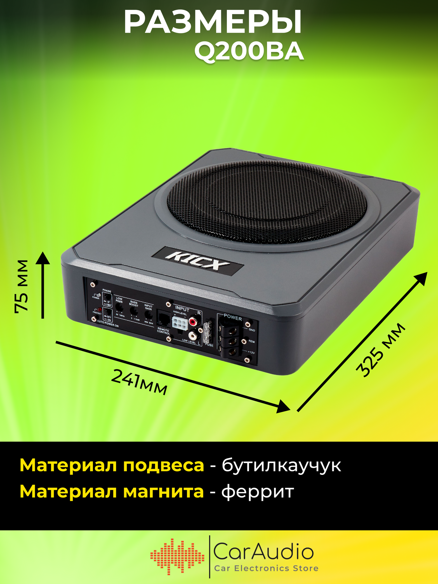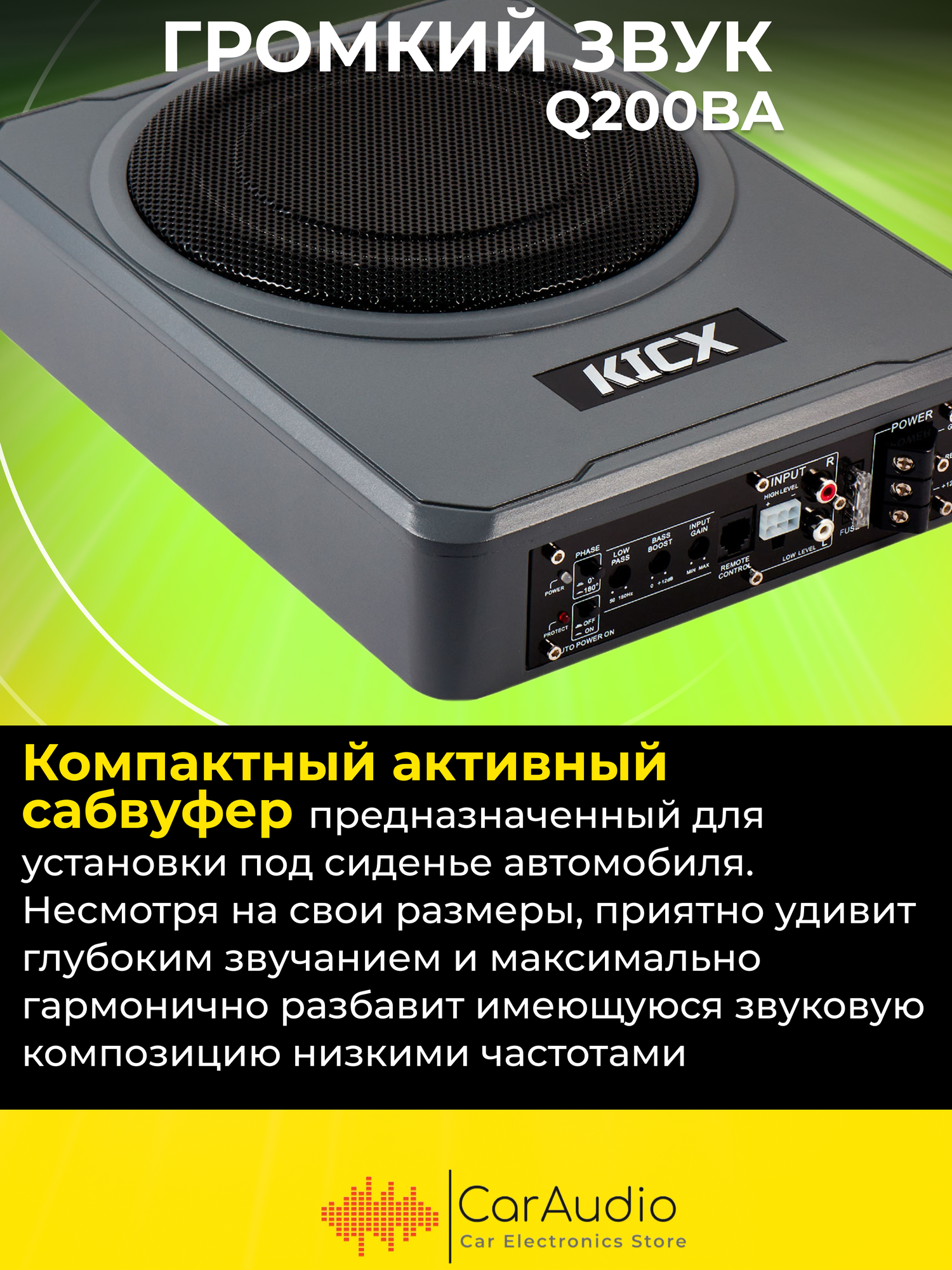 Сабвуфер автомобильный Kicx Q200BA, максимальная мощность 600Вт, размер динамика 20 см (8 дюйм.), частотный диапазон 50Гц-150Гц, активный (2013902)