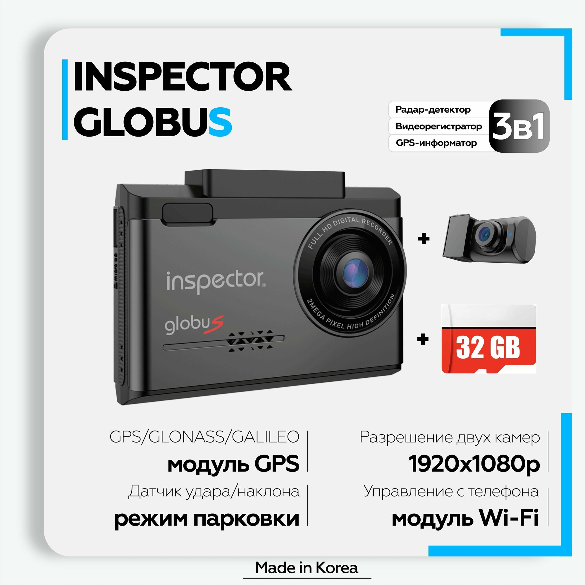 Видеорегистратор с антирадаром Inspector GLOBUS GLOBUS GPS ГЛОНАСС