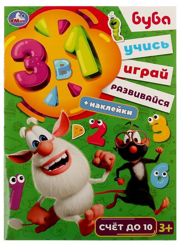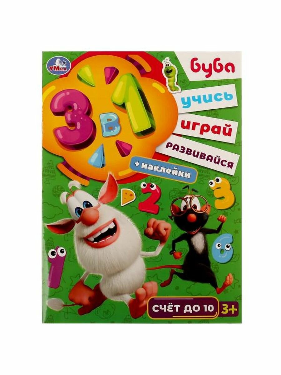 Активити 3 в 1 с наклейками. Учись! Играй! Развивайся! Буба. Счёт до 10 (Нет автора); Умка, 2022