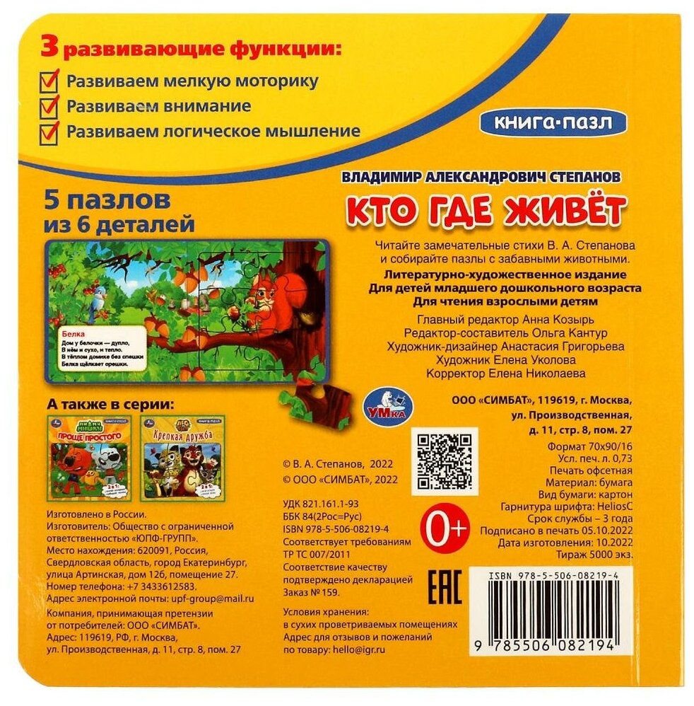Книга-пазл 2 в 1. 5 пазлов. Кто где живёт. В. А. Степанов, ТМ «УМка»: