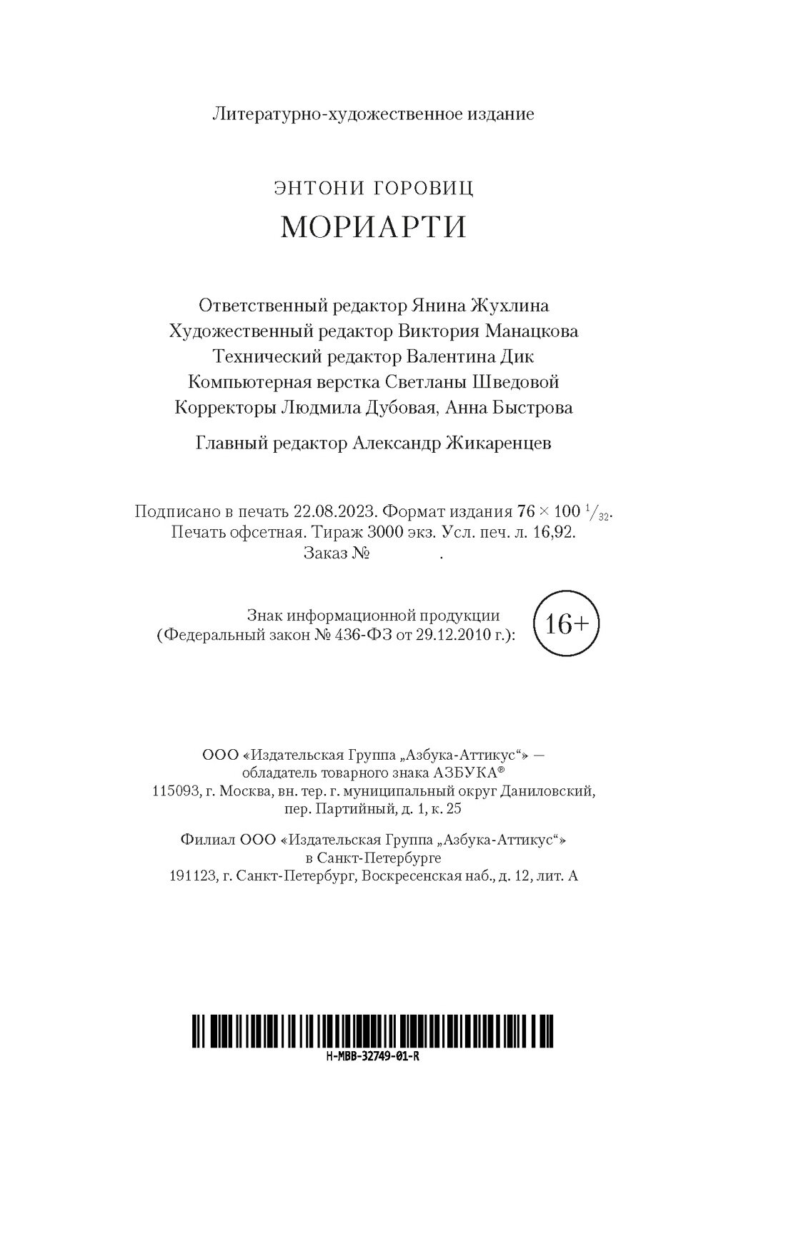 Книга: Мориарти (Энтони Горовиц); Азбука, 2023