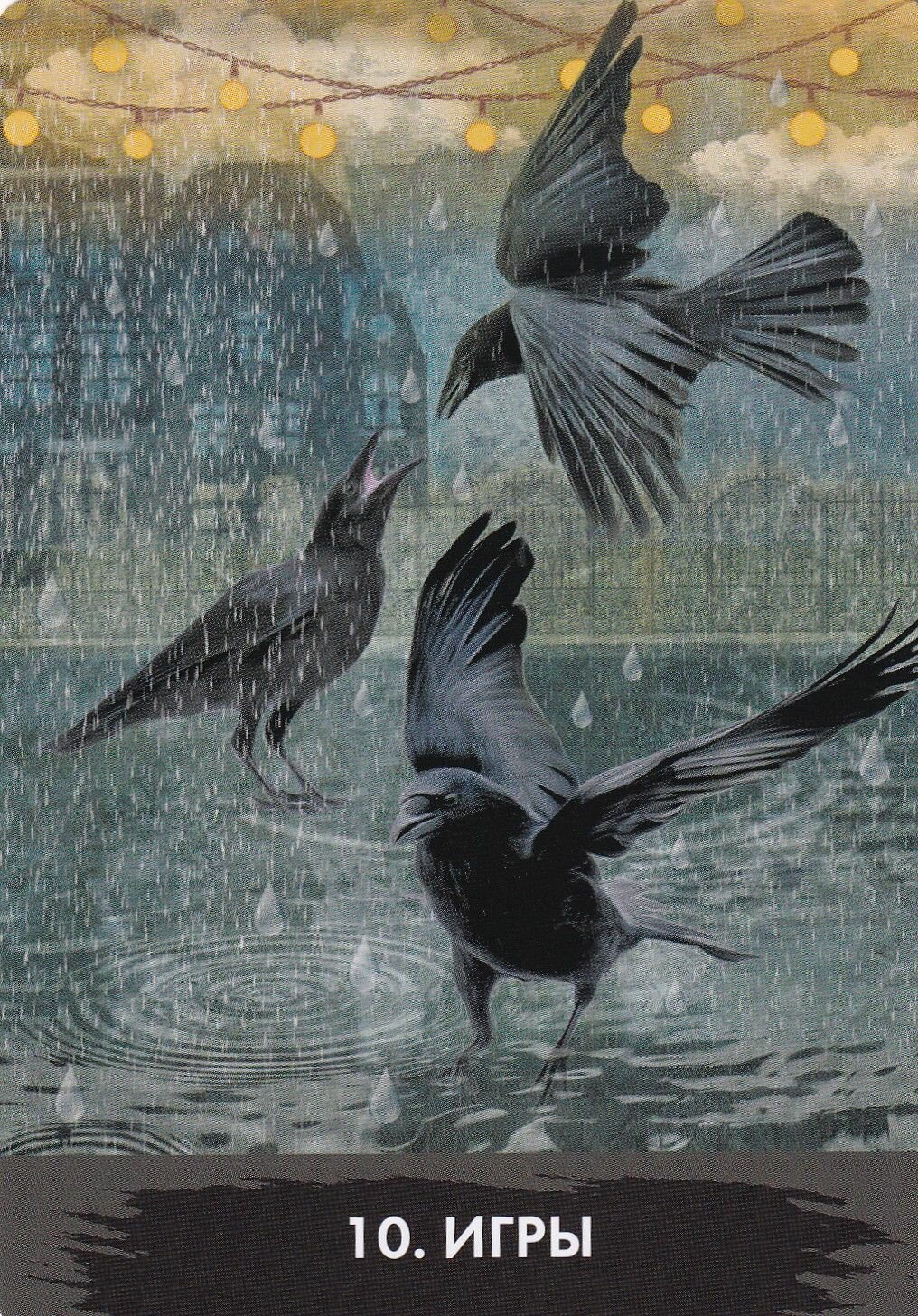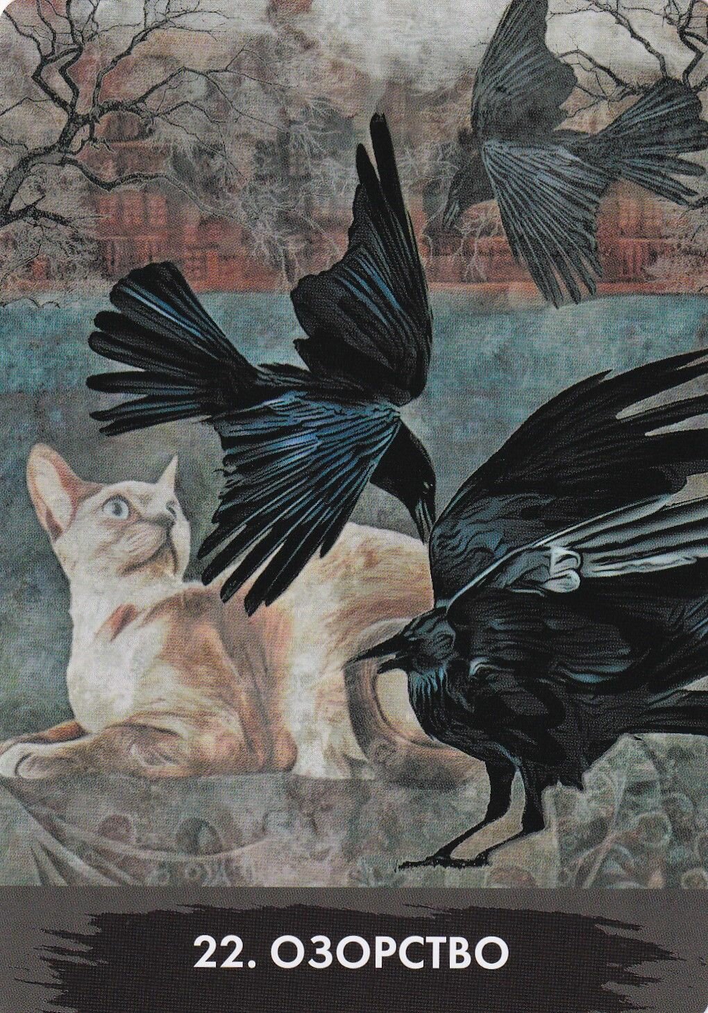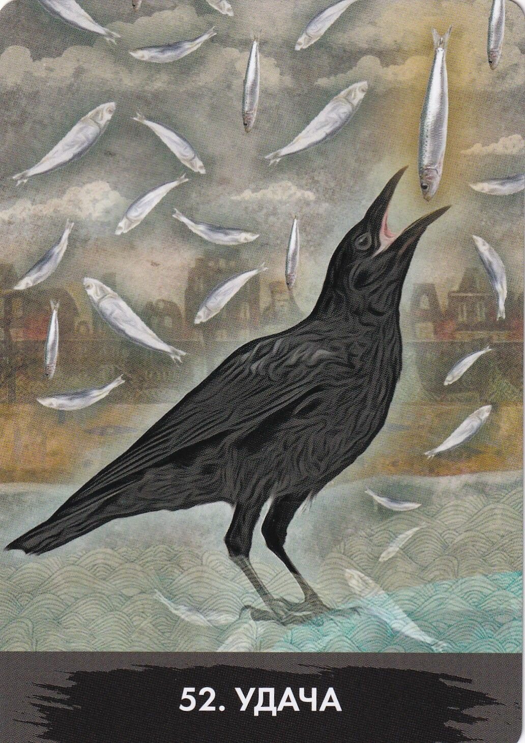 Отличная колода для работы! Давно ждала переводы "Городской вороны" и наконец дождалась! Карты большие и глянцевые. Изображения четкие и хорошего качества. В руководстве есть и авторская игривая расшифровка в духе колоды, и простые толкования карт. Так что можно подойти к раскладам с двух сторон и дать волю своему подсознанию.