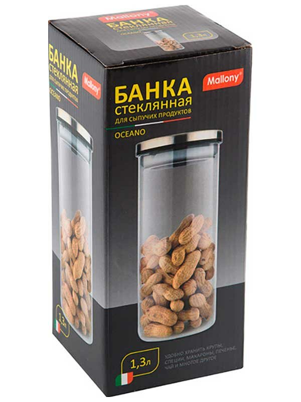 На сегодняшний день товар «Банка для сыпучих продуктов Mallony Oceano стеклянная с крышкой 1.3л China Light Guangzhou Hometrend Trading» можно купить с кешбеком в 1 магазине: Яндекс.Маркет
