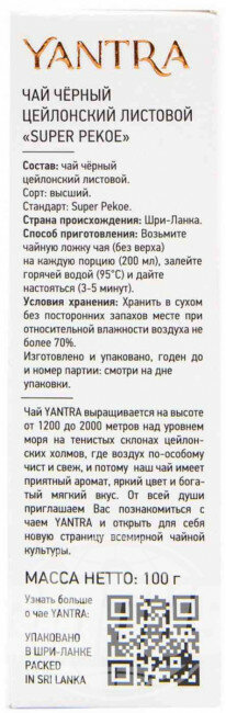 Чай черный Yantra Super Pekoe 100г Femrich Lanka (Pvt) Ltd
