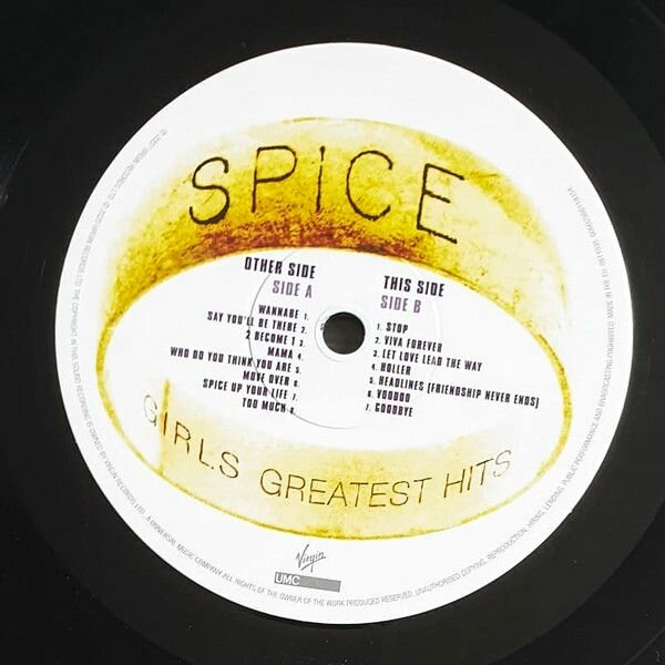 Переиздание сборника лучших хитов британской женской поп-группы Spice Girls. Релиз представлен на черном 180-граммовом виниле. Spice Girls - британская женская поп-группа, образованная в Лондоне в 1994 году. Группа является самой коммерчески успешной женской группой в истории поп-музыки, о чём свидетельствуют высокие тиражи проданных альбомов и синглов, высокие места в хит-парадах, посещаемость концертов и продажи товаров с символикой группы. Всего Spice Girls выпустили три студийных альбома, проданных по всему миру суммарным тиражом свыше 75 миллионов копий.