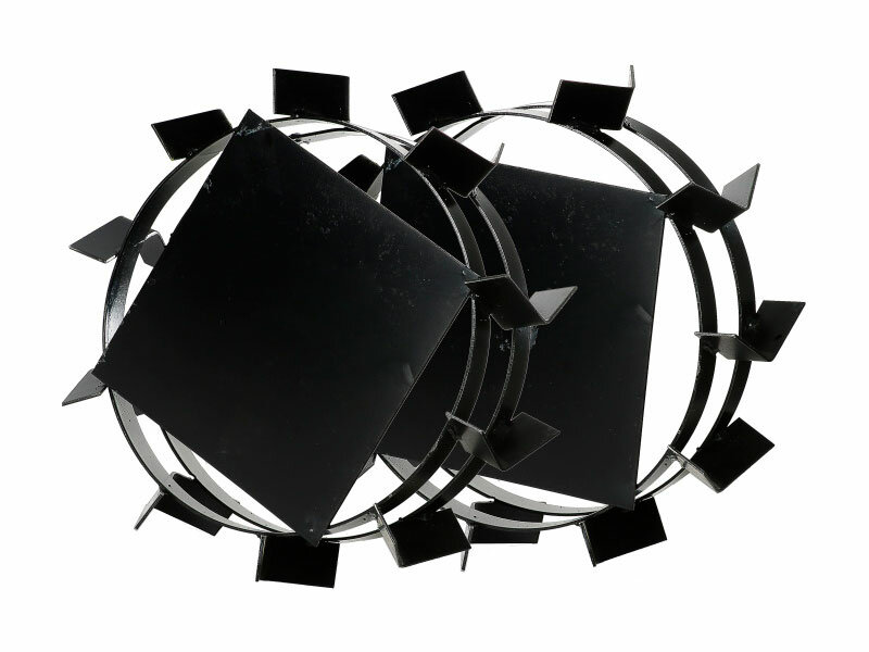 Грунтозацепы используются в качестве замены резиновых колес и обеспечивают сцепление с грунтом при работе мотоблока. Колеса выполнены в виде нескольких полос металла со вваренными в середину листами металла.
