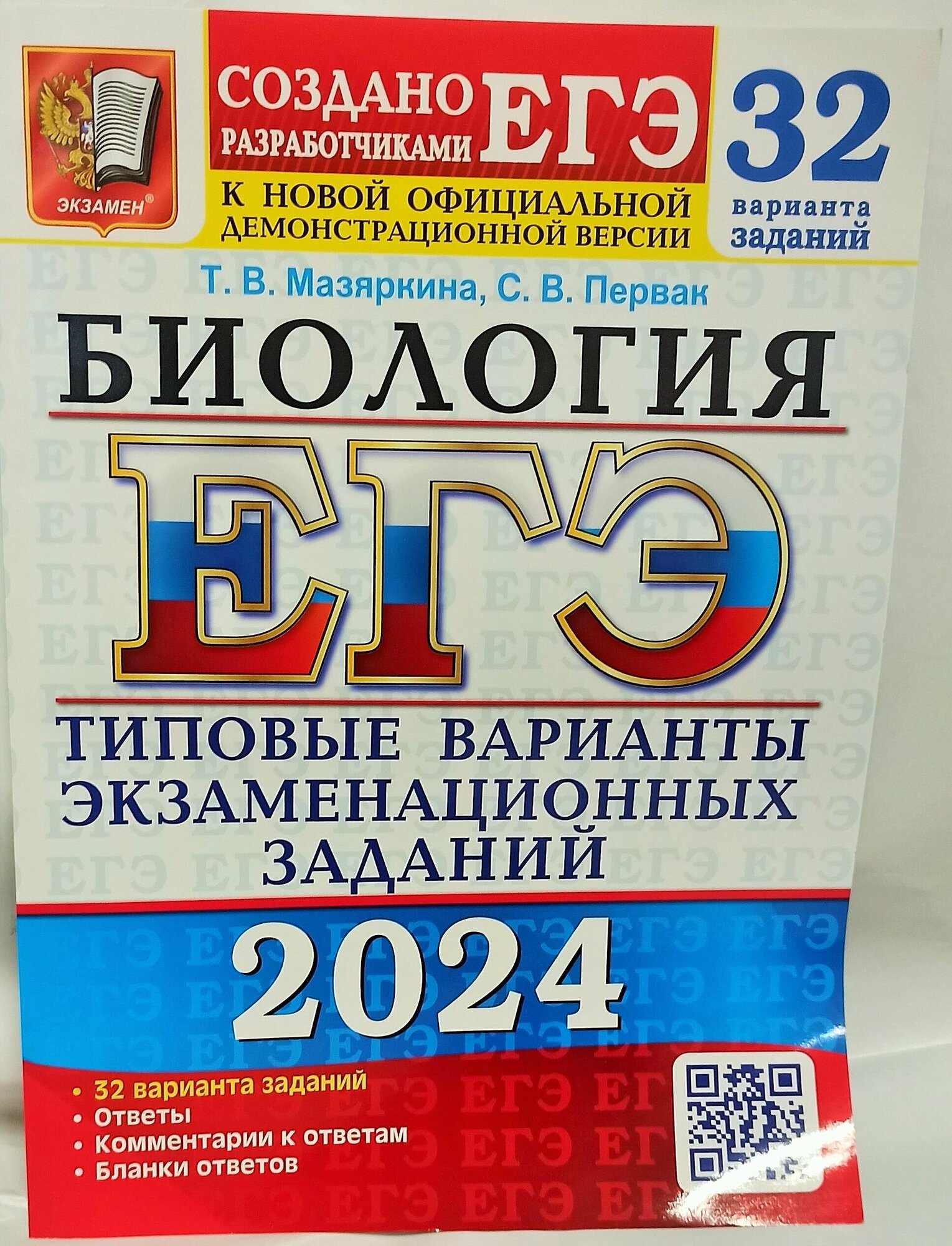 ЕГЭ 2024 Биология ТВЭЗ 32 варианта (Мазяркина Татьяна Вячеславовна, Первак Светлана Викторовна); Экзамен, 2024