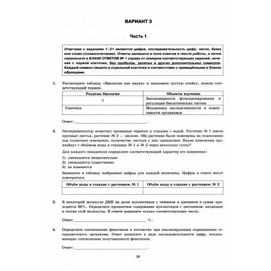 Авторы заданий — ведущие специалисты, принимающие непосредственное участие в разработке метог ских материалов для подготовки к выполнению контрольных измерительных материалов ЕГЭ.Типовые варианты экзаменационных заданий по биологии содержат 32 варианта комплектов заданий,* ставленных с учетом всех особенностей и требований Единого государственного экзамена в 2024 г. Назначея пособия — предоставить читателям информацию о структуре и содержании контрольных измерительных материалов 2024 г. по биологии, их отличии от предшествующих лет, степени трудности заданий.В пособии даны ответы на все варианты тестов, кроме того, приведены образцы бланков, используемых на ЕГЭ для записи ответов и решений.Пособие предназначено учителям для подготовки учащихся к экзамену по биологии, а также учащимся-старшеклассникам — для самоподготовки и самоконтроля.