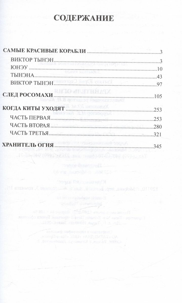 В книгу известного советского писателя Юрия Сергеевича Рытхэу (1930-2008) вошли четыре произведения о жителях сурового заполярного края - Чукотки. В основе первой повести - "Самые красивые корабли" - судьба трех поколений одной чукотской семьи. Вторая повесть - "След росомахи" - о том, что не всем пришлись по душе блага цивилизации, появившиеся в чукотских поселках в советское время. Третья - "Когда уходят киты" - о человеке, который остается одиноким на всем пространстве бескрайней тундры и собственной души из-за того, что он предал своих друзей и близких, всех тех, кто помогал ему в трудную минуту.