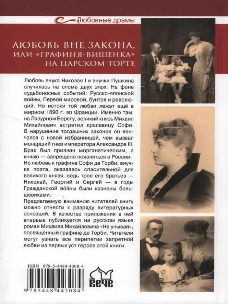 Предлагаемую вниманию читателей книгу можно отнести к разряду литературных сенсаций. В качестве приложения, в ней впервые публикуется на русском языке роман великого князя Михаила Михайловича "Не унывай", посвящённый графине де Торби. Читатели могут узнать все перипетии запретной любви из первых уст героев этой книги.