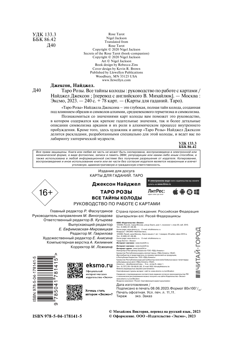 На сегодняшний день товар «Книга: Таро Розы (78 карт и руководство в подарочном оформлении) (Джексон Найджел); ООО "Издательство "Эксмо", 2023» можно купить с кешбеком в 3 магазинах: book24, Буквоед, Читай-город