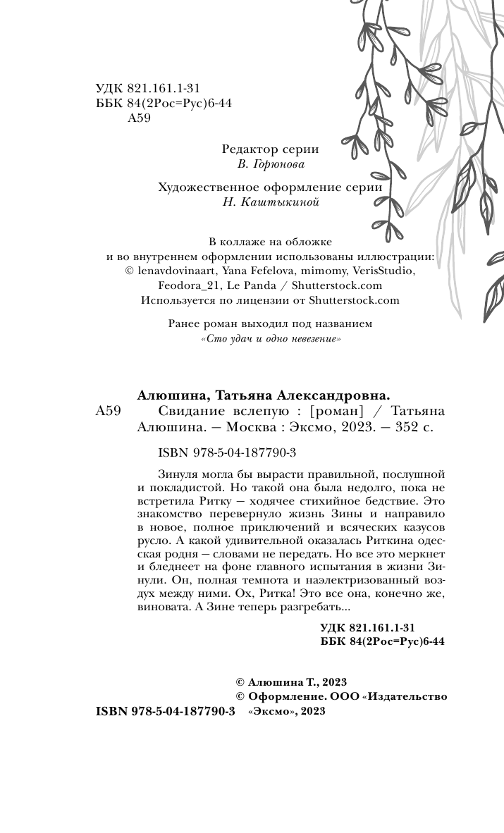 Книга: Свидание вслепую (Алюшина Татьяна Александровна); ООО "Издательство "Эксмо", 2023