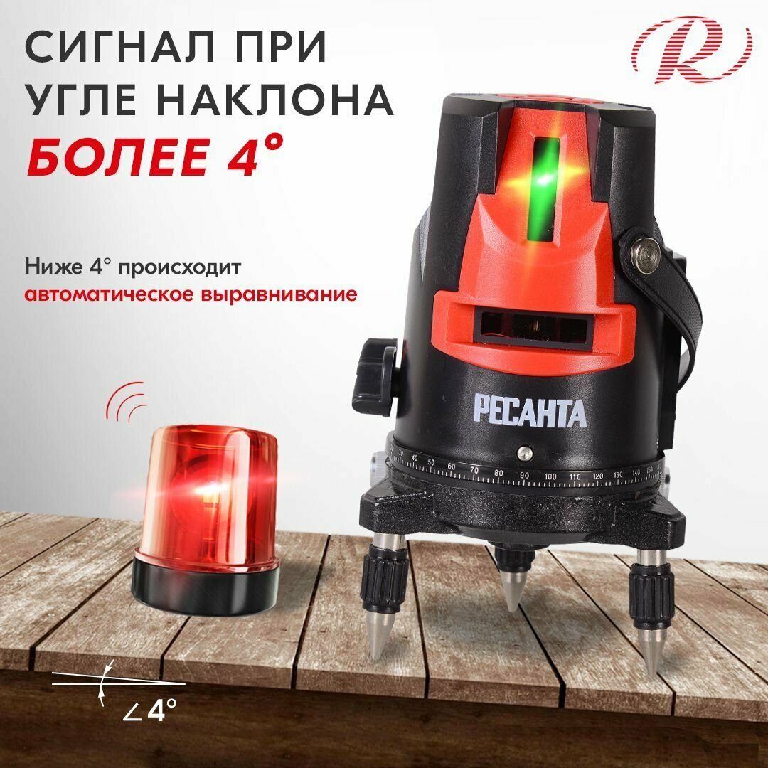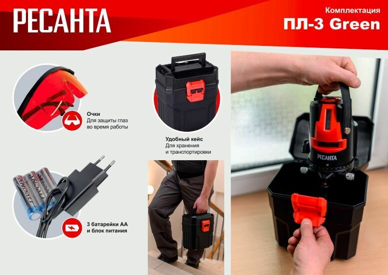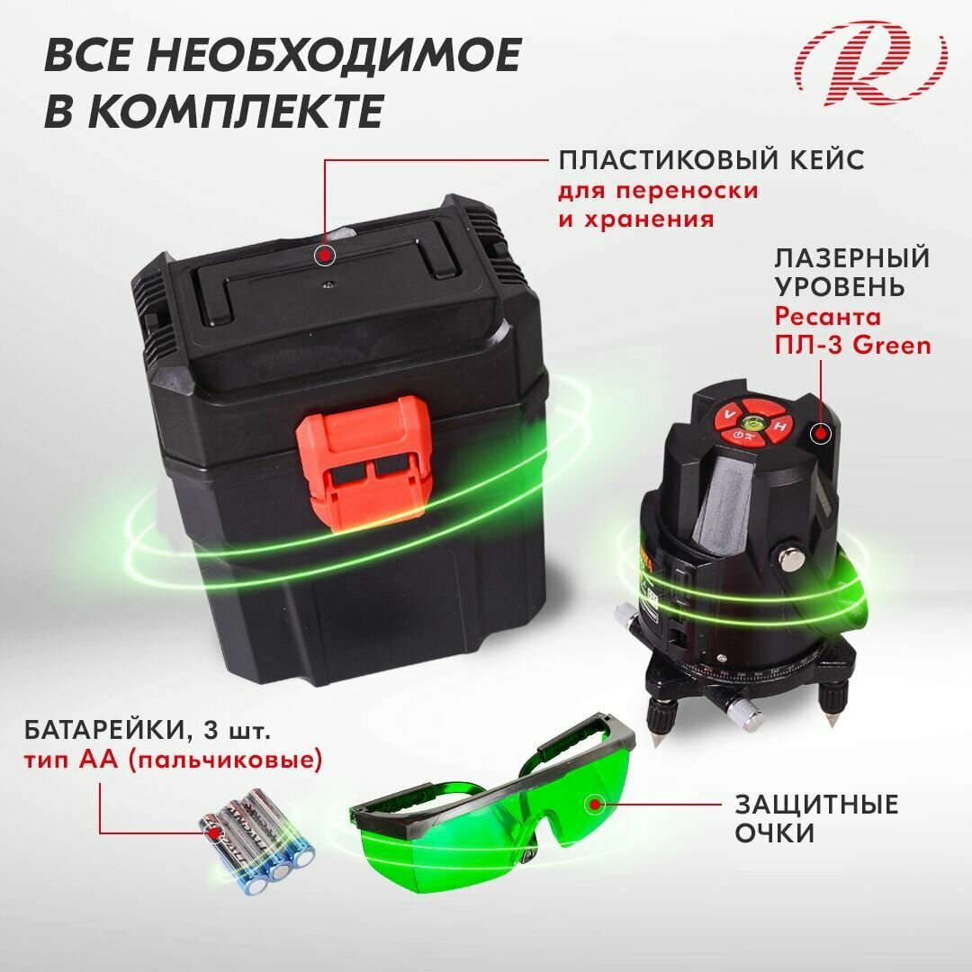 Лазерный нивелир Ресанта ПЛ-3 Green, 2 класс лазера, цвет луча зеленый,3луч. (61/10/530)