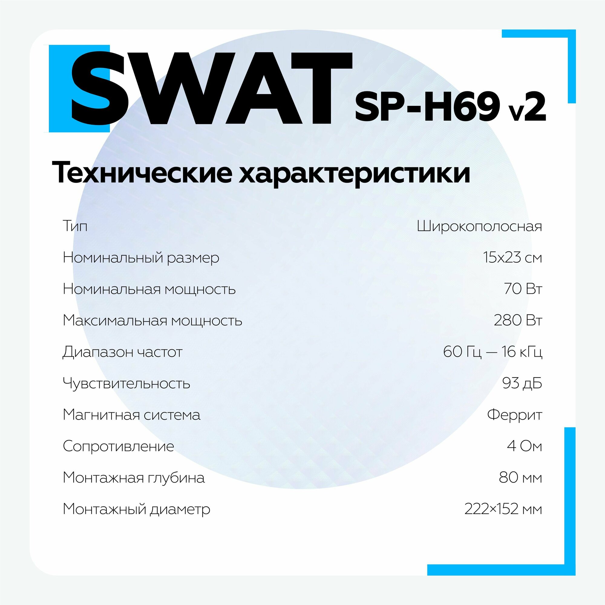 Автомобильные колонки Swat , максимальная мощность 280 Вт, размер динамика 15x23 см (6x9 дюйм.), широкополосные, однополосные, чувствительность 90дБ, импеданс 4Ом (SWAT )