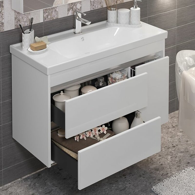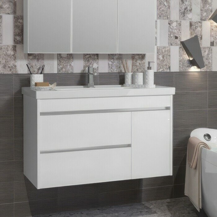 Тумба для комплекта Opadiris Фреш 100 белая бесподобное решение для создания комфортной атмосферы в любой ванной комнате. Подвесной способ установки дает возможность не только визуально увеличить пространство, но и обеспечивает быстрый и удобный доступ для уборки.
