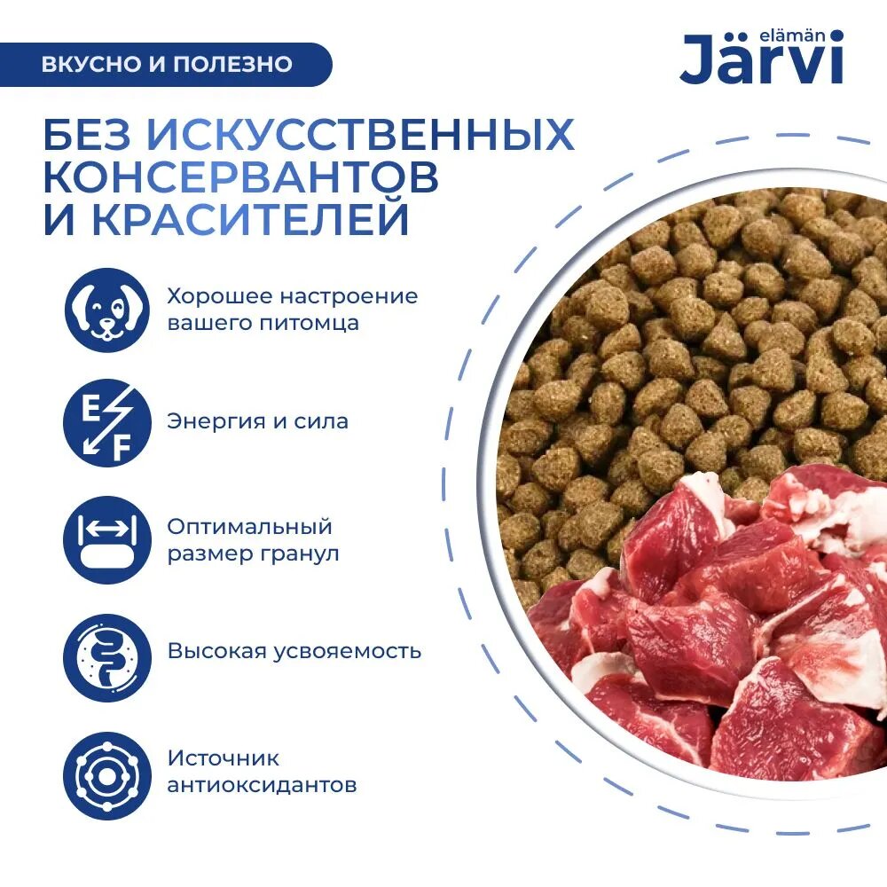 Сухой корм Jarvi для собак – это холистический, полнорационный корм для сбалансированного питания. Он соответствует высоким стандартам финского качества, разработан нутрициологами и одобрен ветеринарами.