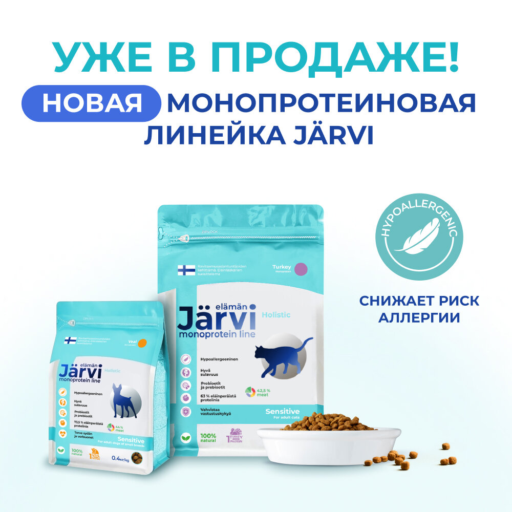 Сухой корм Jarvi для кошек – это холистический, полнорационный корм для сбалансированного питания. Он соответствует высоким стандартам финского качества, разработан нутрициологами и одобрен ветеринарами.В составе корма присутствуют все необходимые витамины и микроэлементы для полноценного развития и здоровья вашего питомца. Естественные источники FOS, MOS и пробиотичесий комплекс обеспечивают хорошую усвояемость. Линейка кормов включает в себя несколько видов продуктов, которые можно подобрать под индивидуальные особенности вашего домашнего животного.