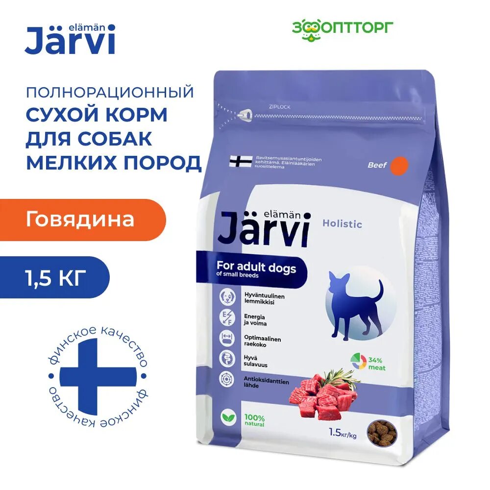 Jarvi сухой полнорационный корм для взрослых собак мелких пород (Говядина 15 кг.)
