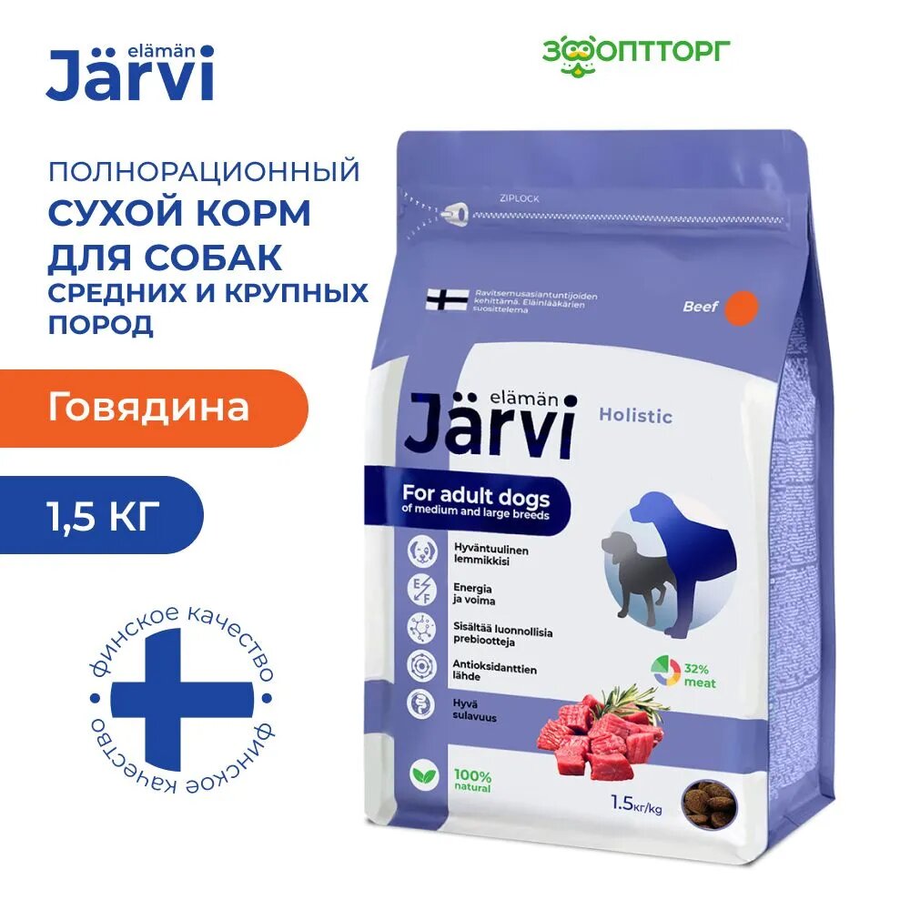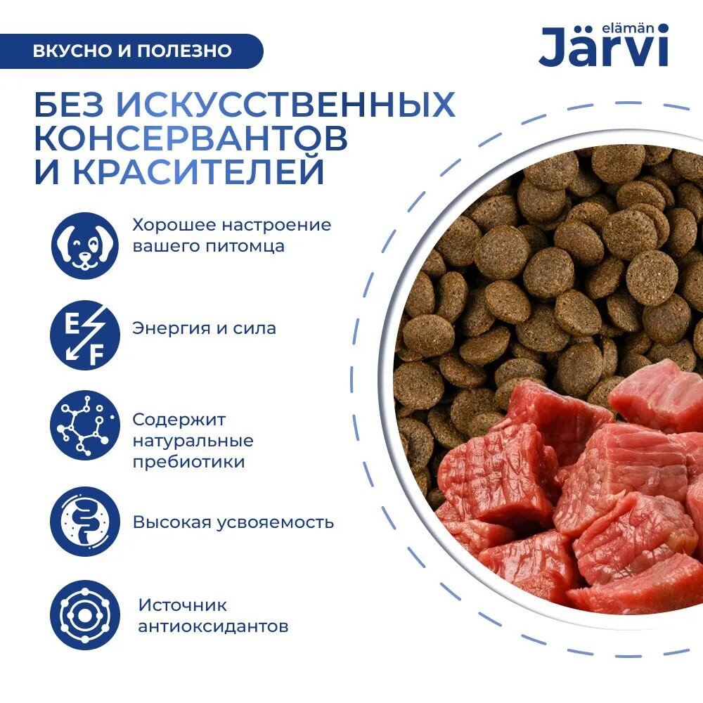 Jarvi сухой полнорационный корм для взрослых собак средних и крупных пород (Говядина 15 кг.)
