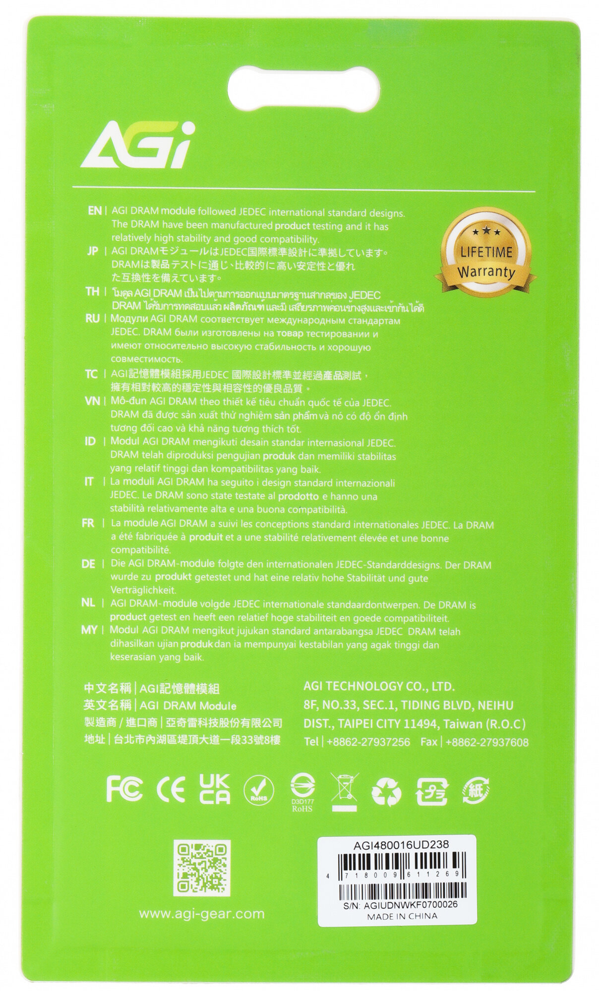 | Код вендора | AGI480016UD238 |