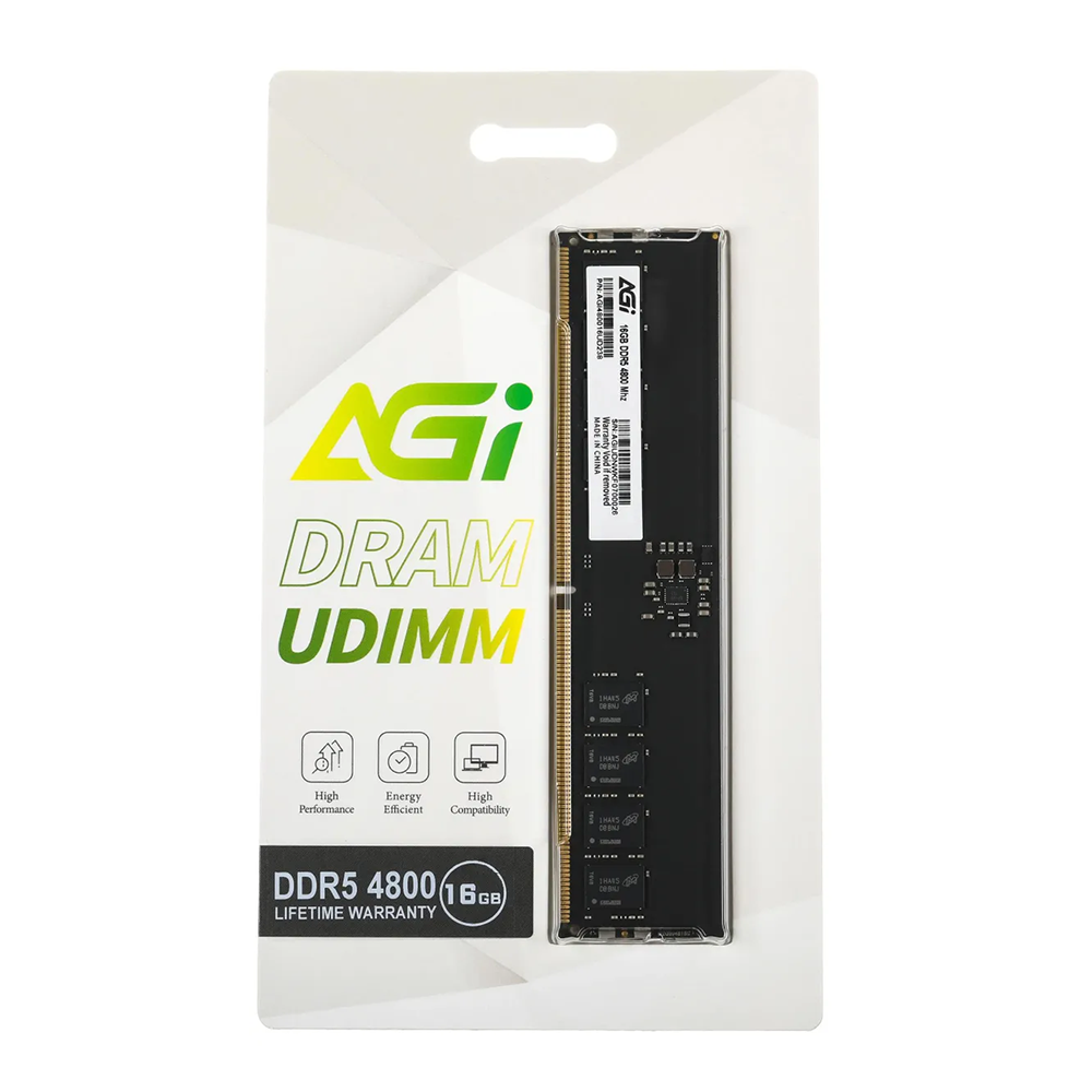 Модуль памяти AGi AGI480016UD238, объем 1 х 16GB, форм-фактор DIMM 288-pin, тип памяти DDR5, рабочая частота 4800MHz, unbuffered