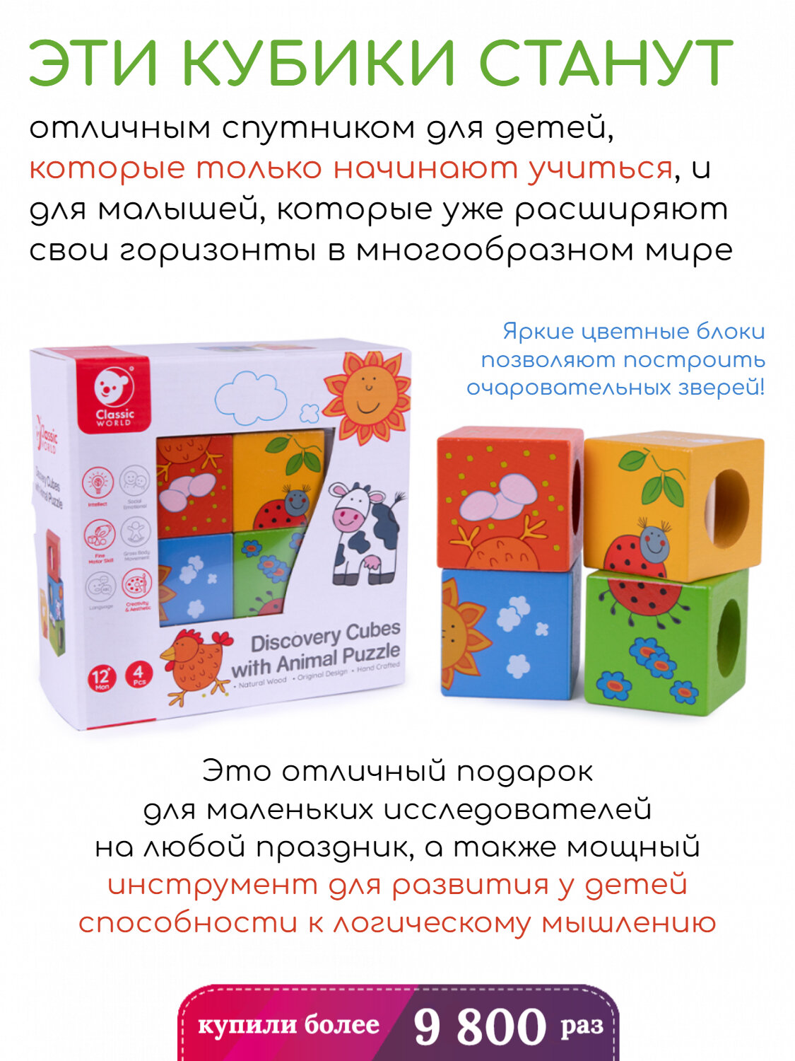 А спрятанные внутри каждого кубика небольшие сюрпризы подарят ему радость и счастье.