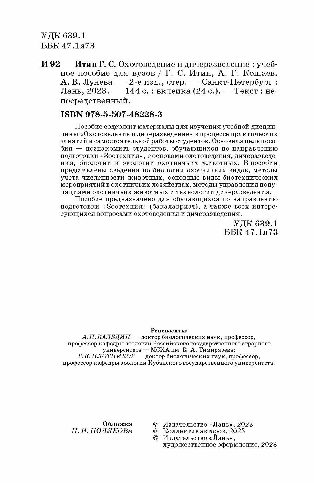 Охотоведение и дичеразведение (Итин Геннадий Семенович); Лань, 2023